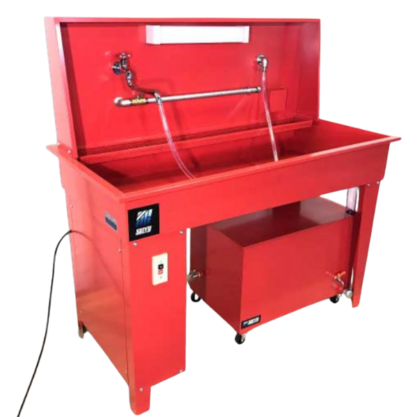 エンジン部品や足回り部品に付着した油汚れ・グリス・カーボン汚れを洗浄するための自動車整備用機械です。